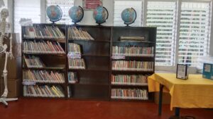 We pulled up to the gate of the rural elementary school on a sunny, hot afternoon. There was a welcome sign complete with flowers and necklaces as we entered the school yard. Kids popped their heads out of their classrooms as we walked to the Learning Resource Center (LRC or library).